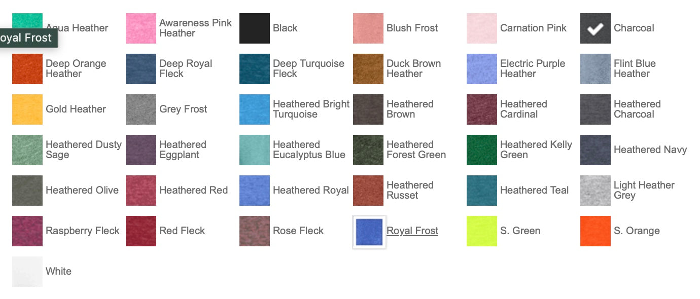 These shirts will be place on the soft District Perfect Blend CVC Tee (60/40 combed ring spun cotton/polyester). All shirts will be short-sleeve.