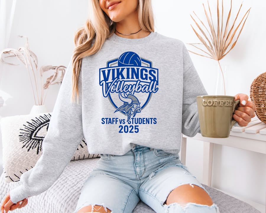 Show your team spirit with the MillbrookVikings Staff vs Students volleyball tee! Printed on a 100% polyester (performance-blend) Port & Company shirt in silver, this design pairs comfort with school pride.