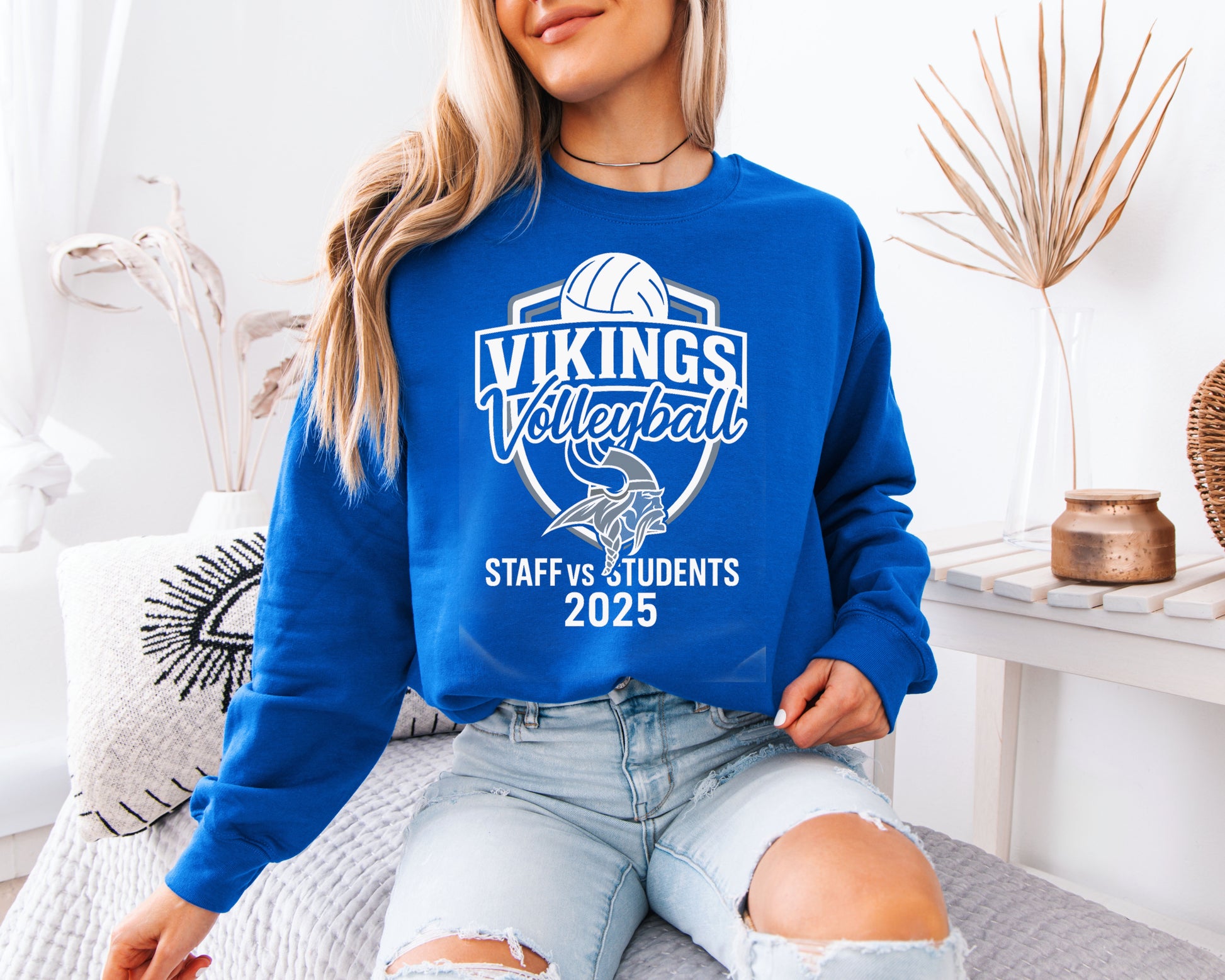 Show your team spirit with the MillbrookVikings Staff vs Students volleyball tee! Printed on a 50/50 cotton/polyester Port & Company shirt in royal blue, this design pairs comfort with school pride.